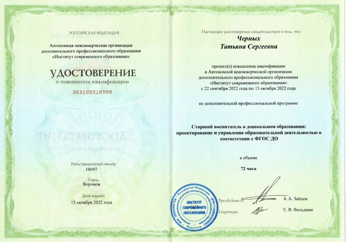 «Старший воспитатель в дошкольном образовании: проектирование и управление образовательной деятельностью в соответствии с ФГОС ДО»