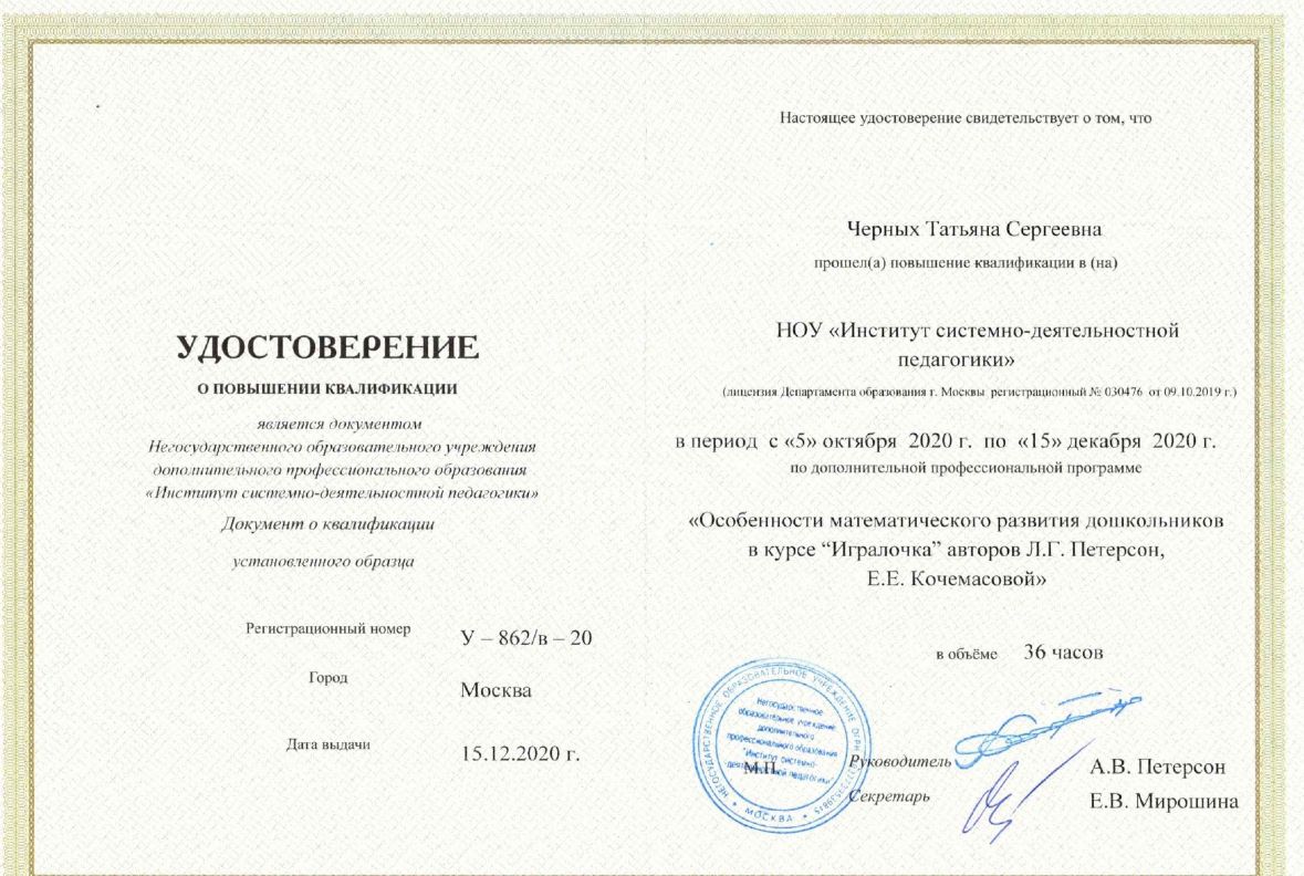 «Особенности математического развития дошкольников в курсе «Игралочка» авторов Л.Г.Петерсон, Е.Е. Кочемасовой»
